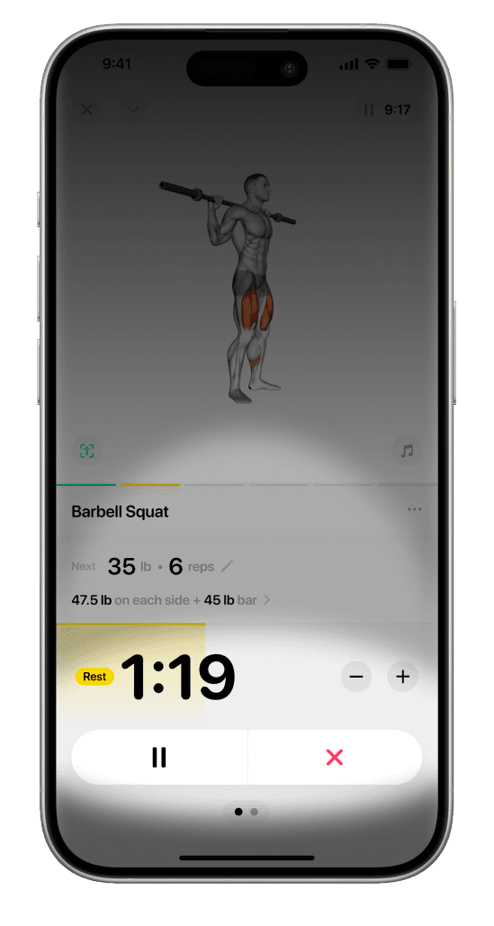 For example, the workout logging and guidance experience is designed to accommodate a range of complexity during a workout. The most common features, such as rest timer controls and set information, are prominently placed at the top of the information and visual hierarchy, while more advanced options are organized with leads surfaced at relevant points. This layered structure has brought order to the dozens of features needed in these views, with their discoverability gradually increasing with complexity. This approach allows people to learn and navigate the UI at their own pace. As they become more advanced in their fitness journeys, people are often surprised by how deep and powerful the tool can be.
