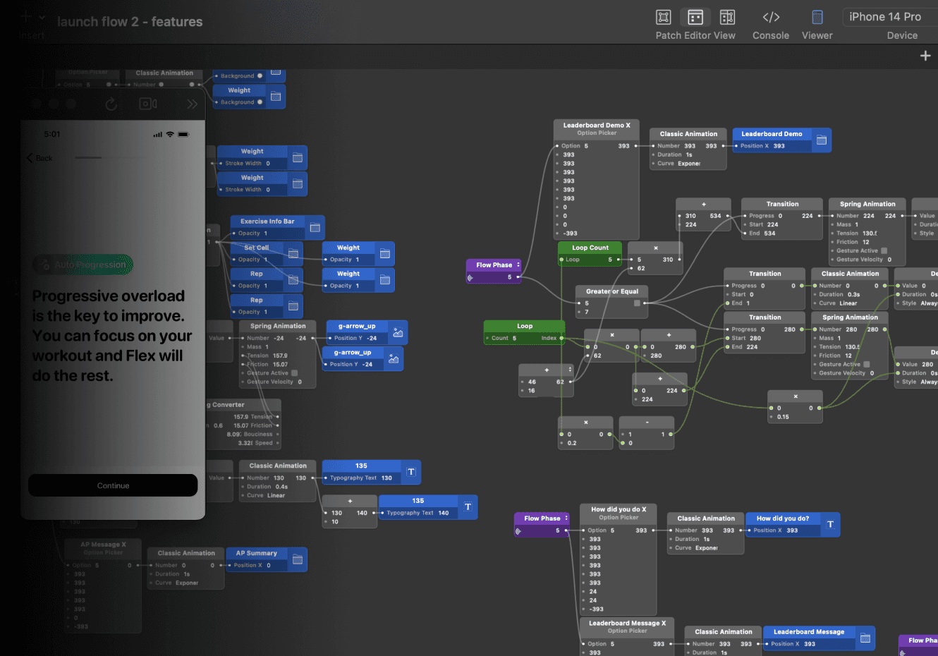 Building interactive prototypes has become a key part of my workflow. Tools like Origami, Figma, and SwiftUI were used for the motion design in Flex.