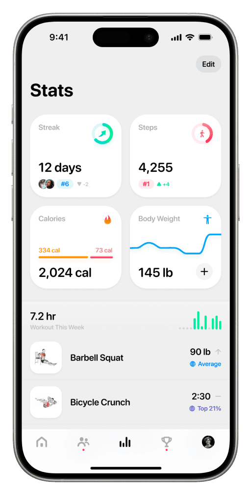 Not all achievements are big and flashy, and the ways we celebrate them don’t always need to be either. I carefully crafted many design details to provide positive feedback—from the subtle yet satisfying sound and haptic response when logging a set, to the more substantial animation when completing a workout. It’s crucial not to overdo these animations or overwhelm the user; each one should complement the moment with purpose. For instance, the workout completion animation not only indicates how much of the workout session was completed but also naturally guides the user’s attention to the workout calendar, showcasing their progress.